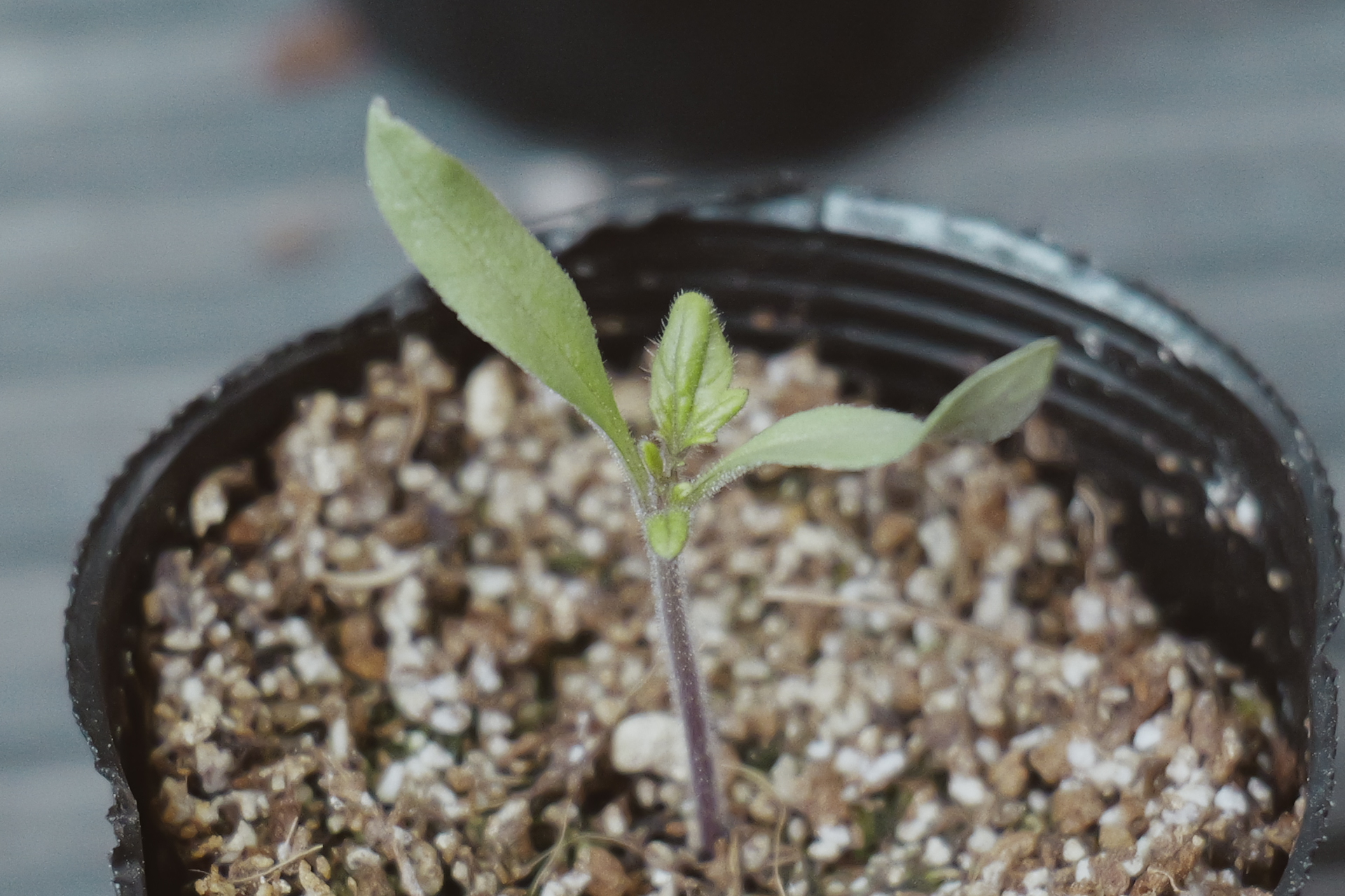 本葉が出る頃に、双葉が大きく軸が太い芽を選んで間引きします。